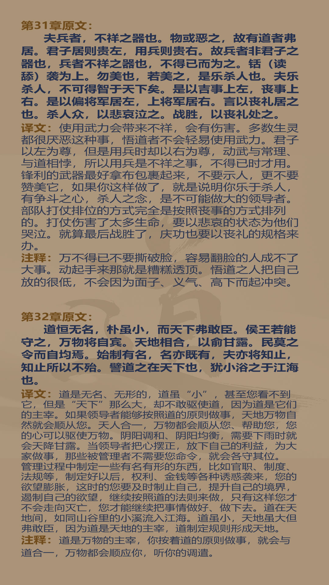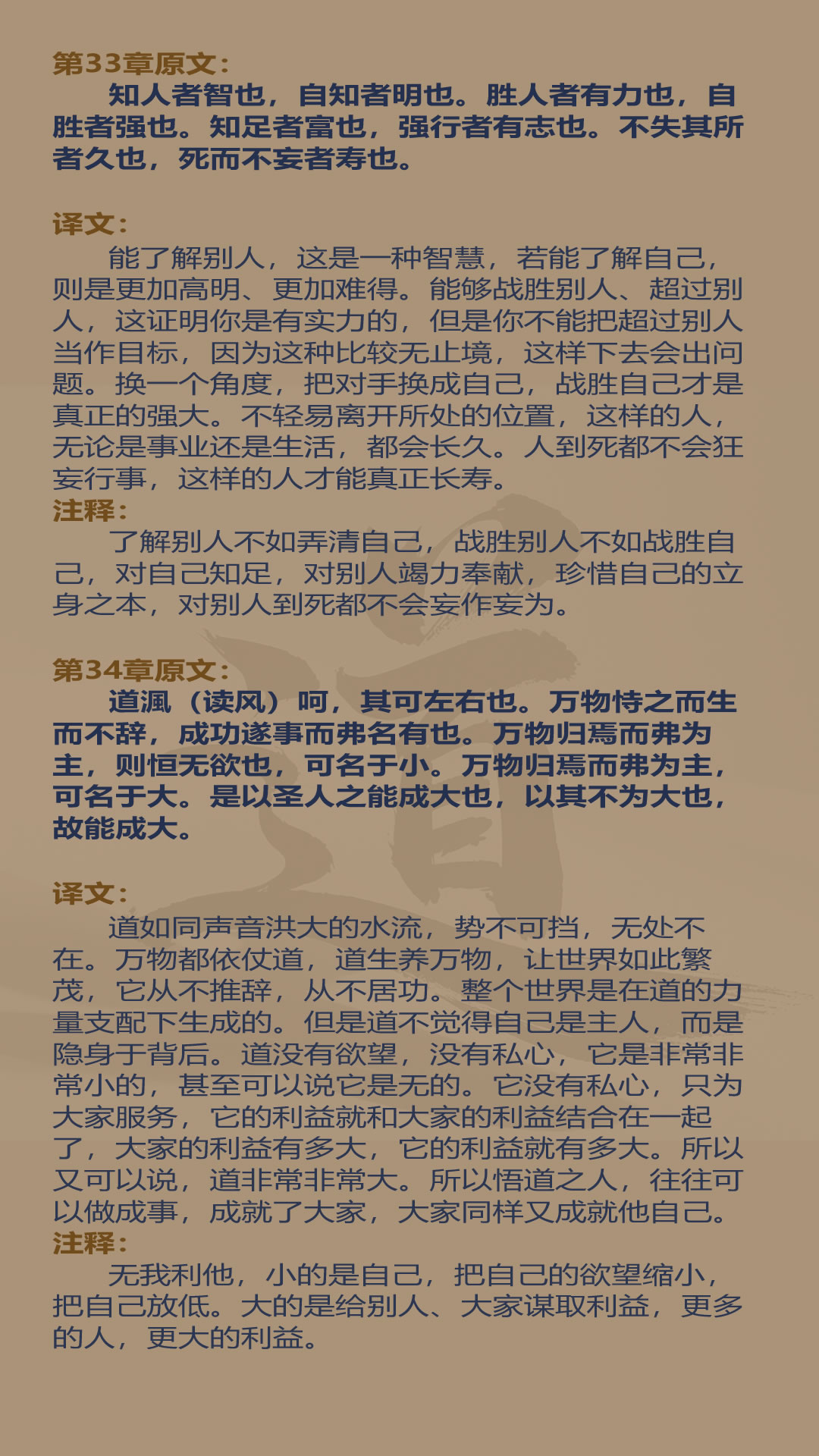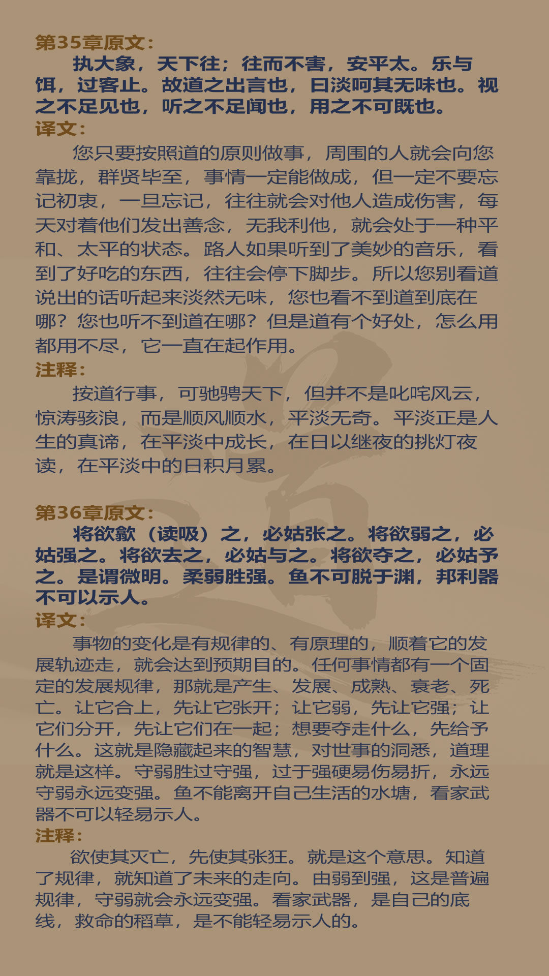 《道德经》是中国最伟大的经典之一,它参与塑造了中国人的性格,它的影响遍及全球。它由道家学派创始人老子所著,全书仅5000多字,却字字珠玑,堪称经典中的经典,有着“万经之王”的美誉,也是全球文字出版发行量最大的著作之一。我有幸听到了罗大伦在喜马拉雅上播讲的《每天聊点道德经》,受益匪浅,并摘录文中句子,结合自己的理解,与您共同学习、成长。