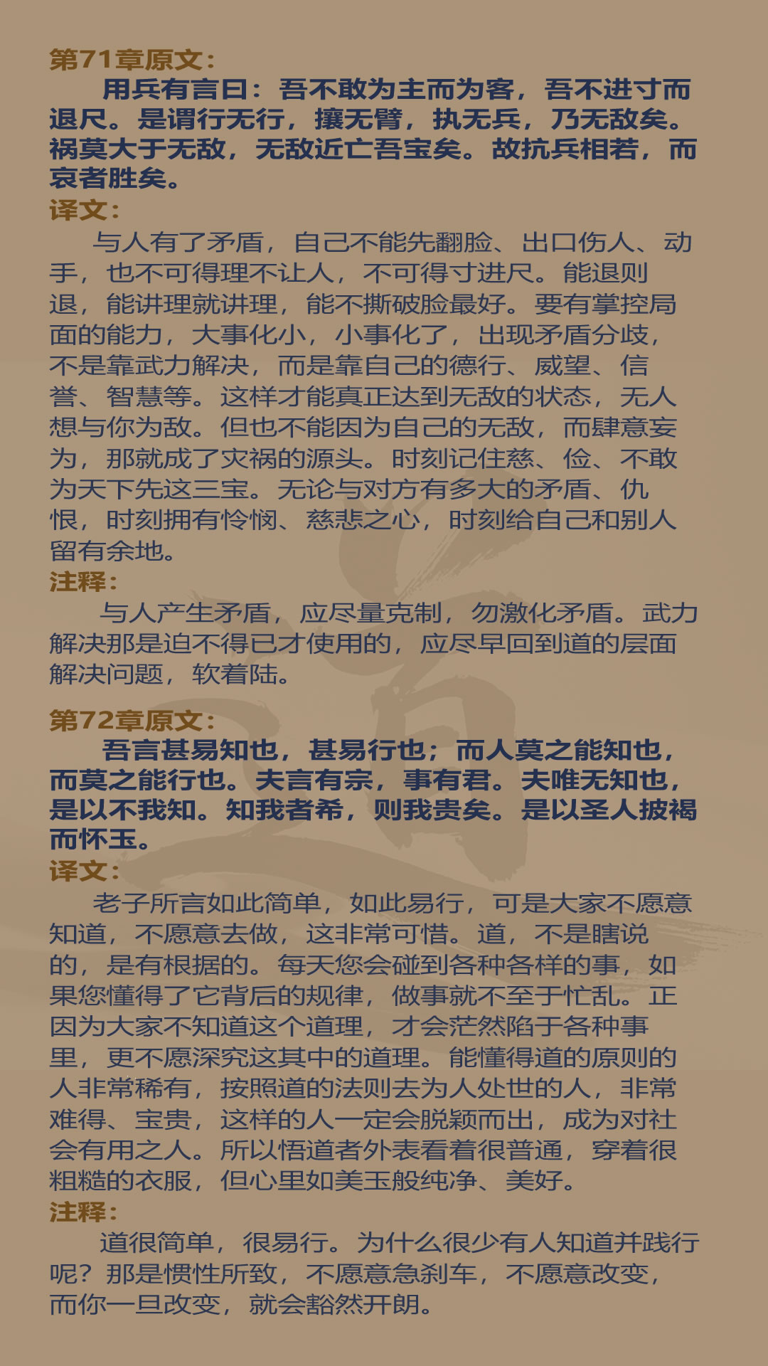 《道德经》是中国最伟大的经典之一,它参与塑造了中国人的性格,它的影响遍及全球。它由道家学派创始人老子所著,全书仅5000多字,却字字珠玑,堪称经典中的经典,有着“万经之王”的美誉,也是全球文字出版发行量最大的著作之一。我有幸听到了罗大伦在喜马拉雅上播讲的《每天聊点道德经》,受益匪浅,并摘录文中句子,结合自己的理解,与您共同学习、成长。